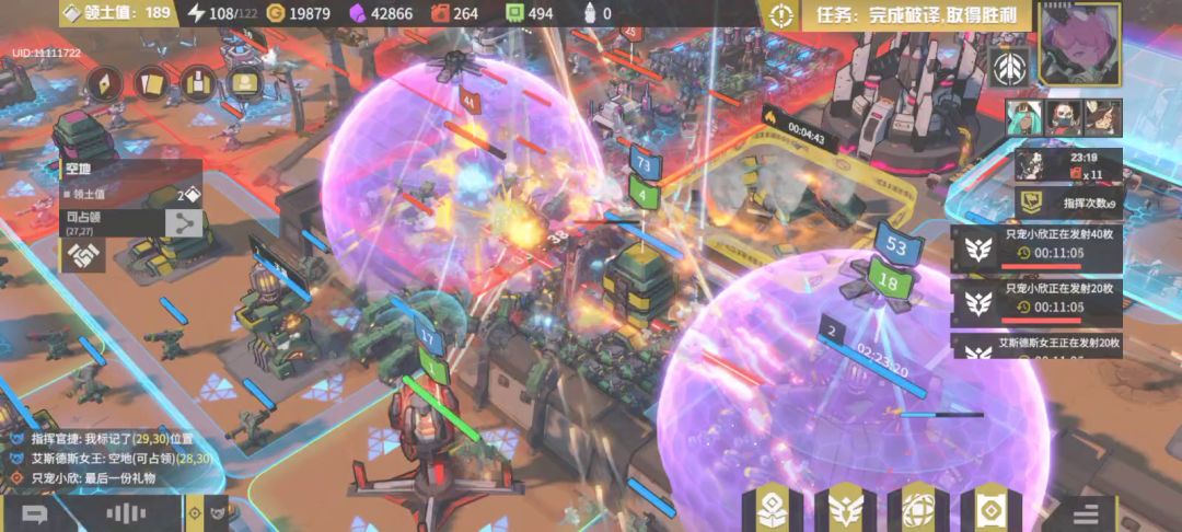 樱子此时突然上线拆了高地两个王权又下线了,我让指挥官捷用速建补上。