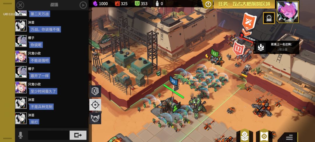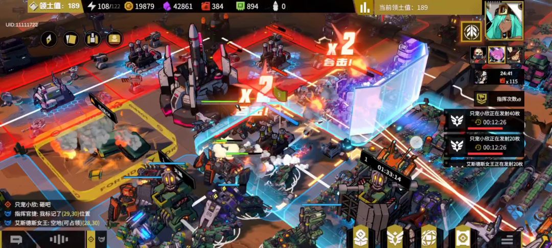 一开始我发觉活跃人数不足时,我的判断是利磁爆+爆破手,和喀秋莎速拆建筑的特性干扰对面前线建筑,反复形成废墟,干扰对面基建,尽可能压制对面骑士塔,但是对面非常精明,早早就起了小王权海,再加上一大堆牛和女武神蹦迪,让几次单人进攻都失效。