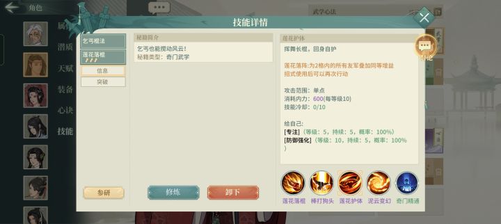 角色定位及浅析:性价比很高的压阵控制位,甲潜质甲武学就能上场,需求资源少,低分段效果好。曾今平民刀魔必备,但由于现在角色综合强度越来越高,阵容面越来越完善,莲花棍陆游在高分段已经是时代的眼泪了。