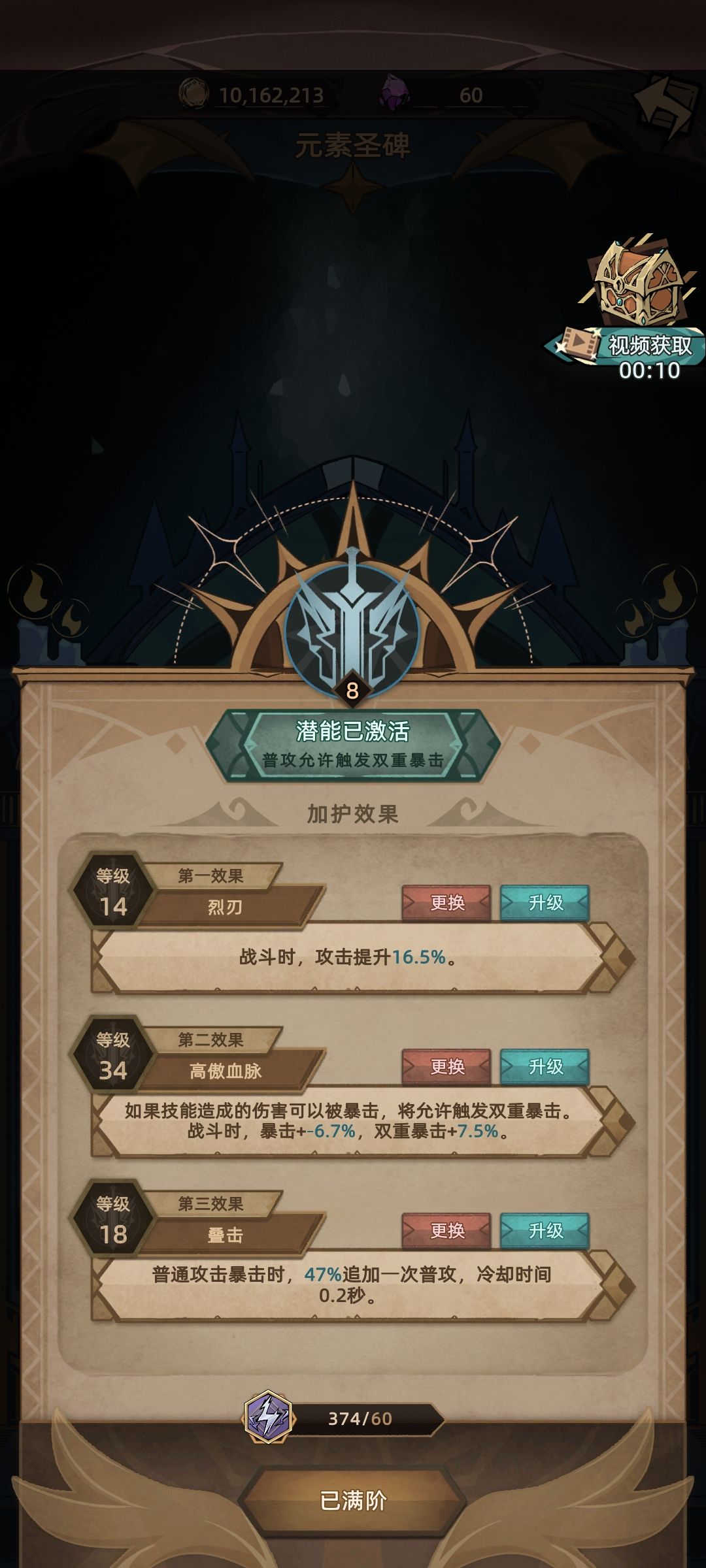 元素塔就是加双爆那个,我也还没刷满,这个最难刷。