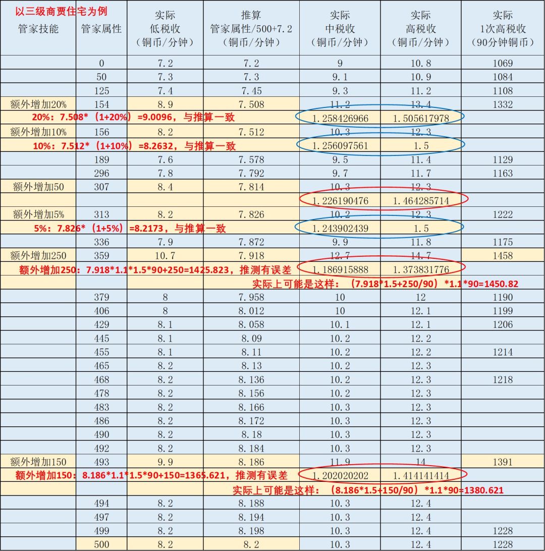 同样的,中税收为1.25*1.1*(7.2+管家能力值/500),