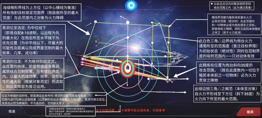 {绝大多数:包含炮台类,舰兵}阵容类型中以对目标物体向下牵制为标准,然此意义规范并非以向下范制为主,而因殖民炮台的直射范围所决。则此意义的位定必以炮台火力的横贯视线外下准,此为实现激光火力{大激光}横贯对方殖民的唯一条件,若脱离此激光火力在直射状态中的范围规范,则此范制的位定可不受位规限制,在通常(纯式大激光所配阵容)状态下可无规则性的向上{无视火力界范线}任何角度延伸。则此炮台直射敌殖民本体为必胜条件,欲满足此条件本方炮台在目标界范内必须扫射至无阻,方能对射敌方殖民并以制胜,则我将此对冲规则命名为{数值抵消式}而黑洞范制只是以另一方式,在炮台直射界范达成火力无阻,非真正意义上的强度抵消。