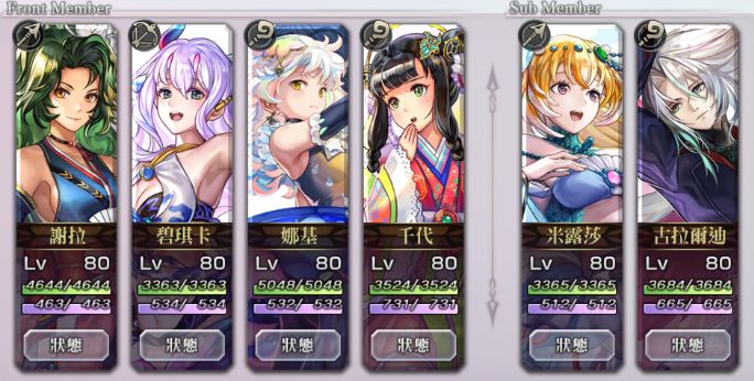 碧琪卡,希拉,奈岐,千代,米露莎,古拉尔迪(形态不限,最高加成2.41倍)
