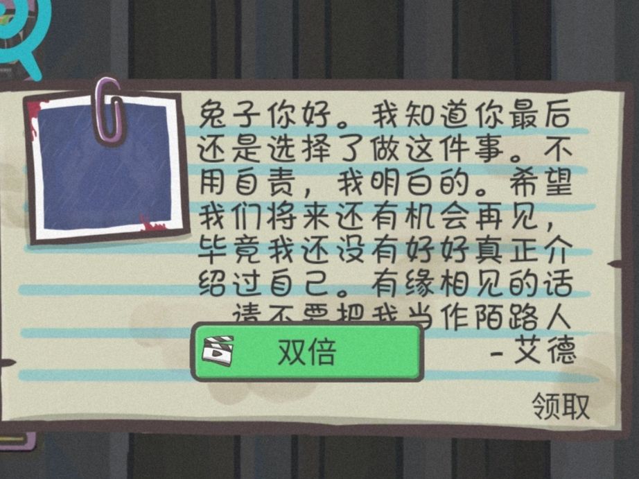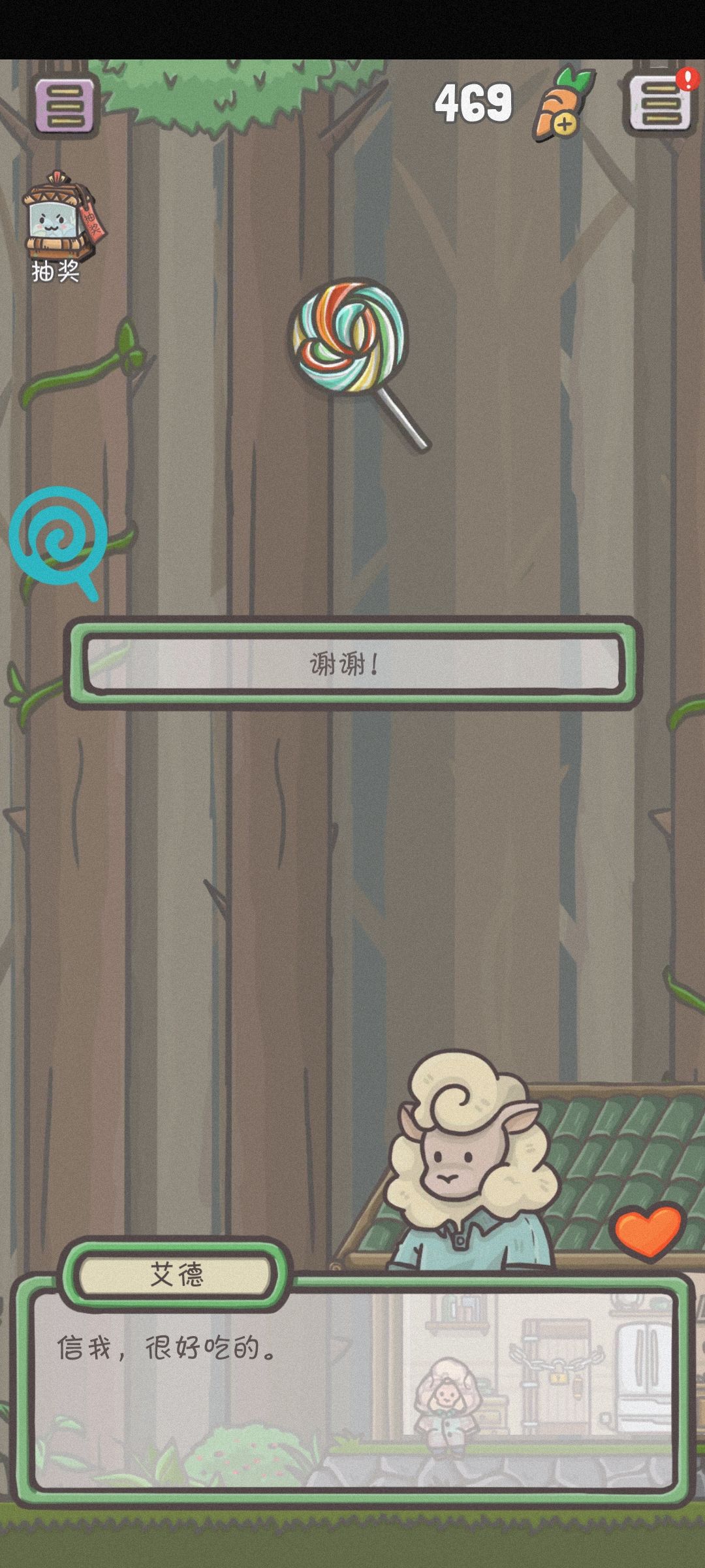 奇怪的羊总是叫兔崽赶紧离开,在晚上会看到他在挖坑和“扔垃圾”。随着好感度提升,会给你一个带有迷药的棒棒糖。
