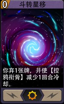 斗转星移:0费特殊魔法卡,你弃1张牌,并使【控鸦衔骨】减少1回合冷却。