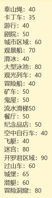 游客对部分设施的面积要求总结。
