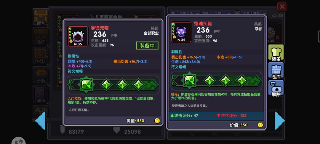 头:学徒头,补充了忍者比较缺少的技伤(冤魂收益高,学徒稳定,我求稳)