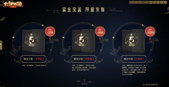 正值大话周年庆之际,“大话西游”18周年超级欢聚盛典中的各种超值活动更是不容错过!作为周年庆的重磅献礼,大话手游2020鎏金宝鉴三大版本已全面亮相,分享版、珍爱版、白金版,不同售价不同内容,总有一款值得被侠士们悉心珍藏!