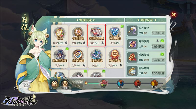 路径:日程-仙缘修炼榜