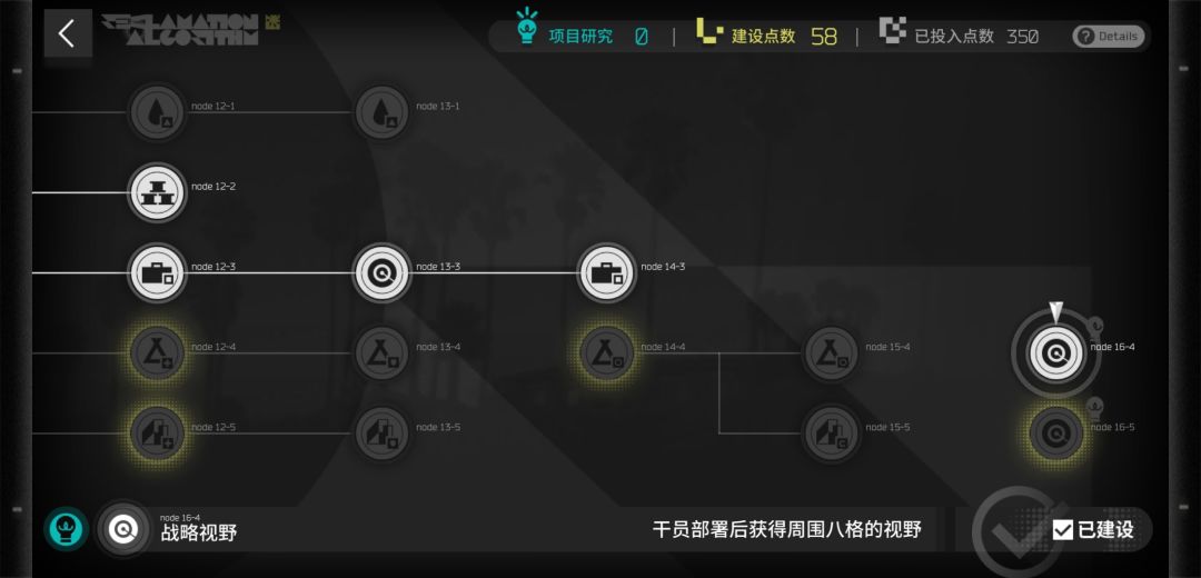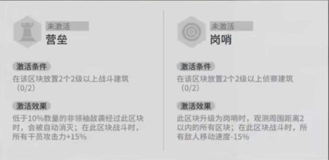 这个东西非常重要,我发现你只要在前几天开荒的时候顺便放下两个二级侦查塔(一定要二级,三级没必要,一级触发不了)就可以触发岗哨,可以免费开周围的区块,迅速找到周围的资源节点。