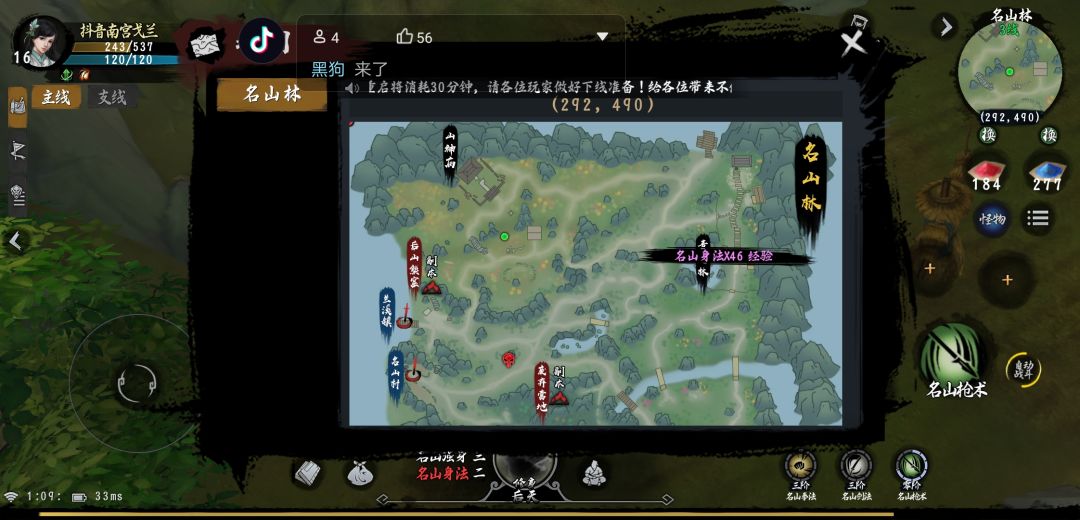 以上做完以后,除开打副本的时间。就是在名山林打怪练级了。根据装备的优劣,选择适合自己的怪练级。通常来说,0氪搬砖散人玩家。我建议去打后山毛贼。