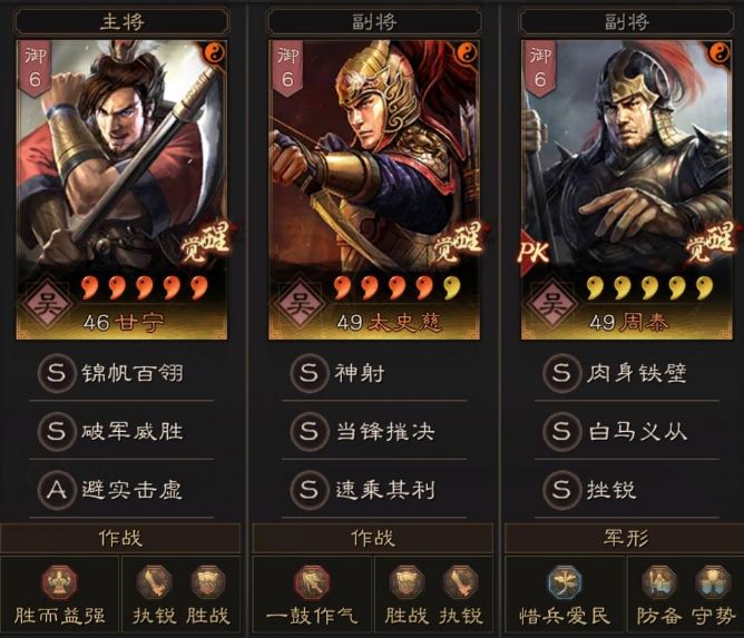 (主将)甘宁,战法搭配:破军威胜+避实击虚