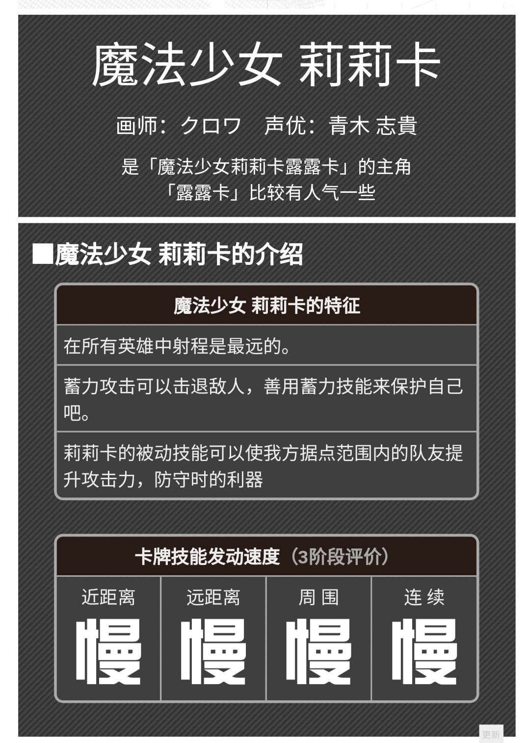 首先,关于莉莉卡,初始10英雄之一,相信基本上所有玩家都算是比较熟悉这个角色(或多或少都玩过吧)。先来看一下莉莉卡的官方介绍: