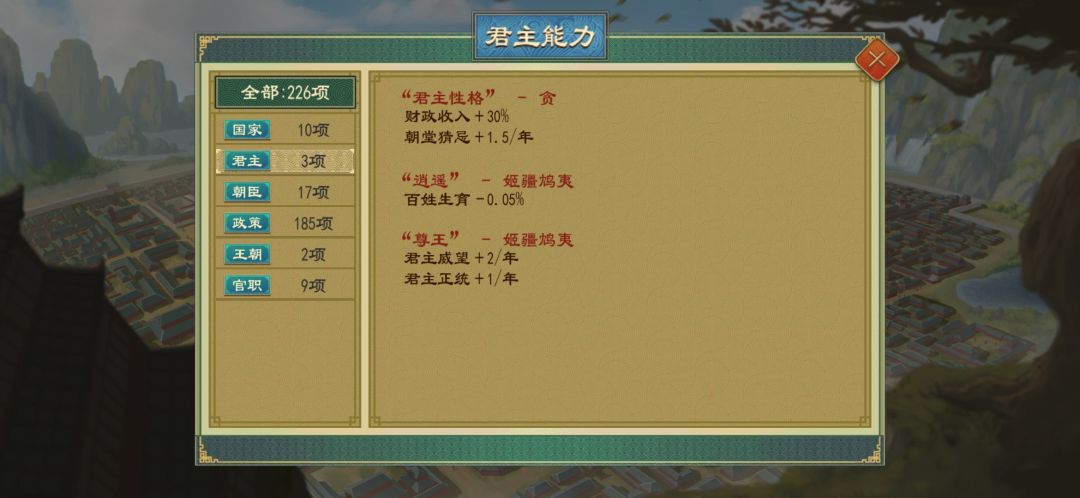 君王除了能力值无用,能力还是非常有用的可以为国家加属性
