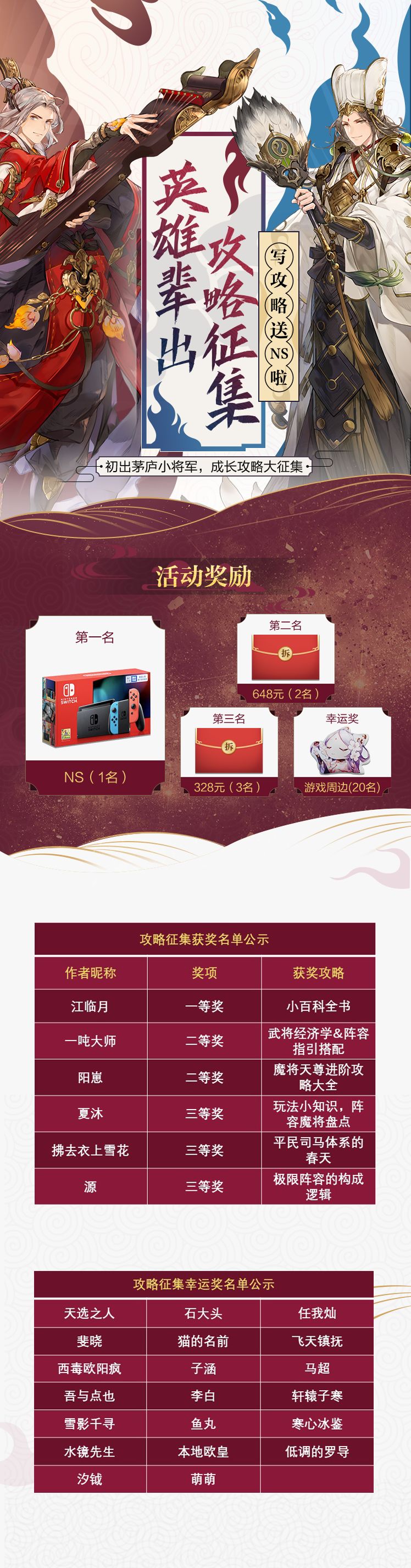 注:除了上述获奖的小将军外,大家的投稿同样都很棒~香香会不定期的从此次投稿攻略中挑选优秀的攻略在官方渠道发布,一经选中也会同样支付稿费的哦。(已获奖的小将军不再结算稿费啦~)