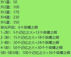 消耗【荣耀之辉】加速灵力获取(开启技能速度),升星后可以消耗【记忆之火】升阶