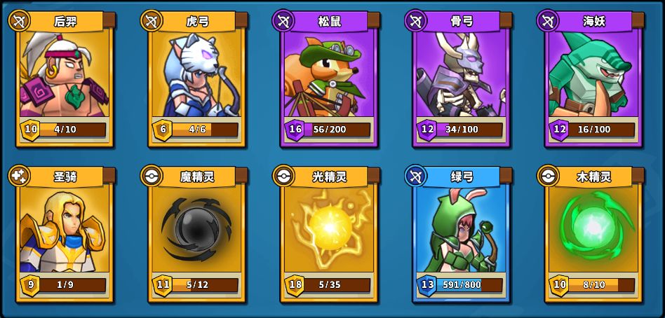 阵容组成:后羿、虎弓、松鼠、骨弓、海妖、圣骑、绿弓、魔精灵、光精灵、木精灵
