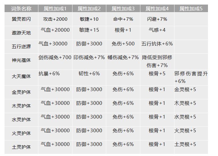 其余品质境界词条属性一览: