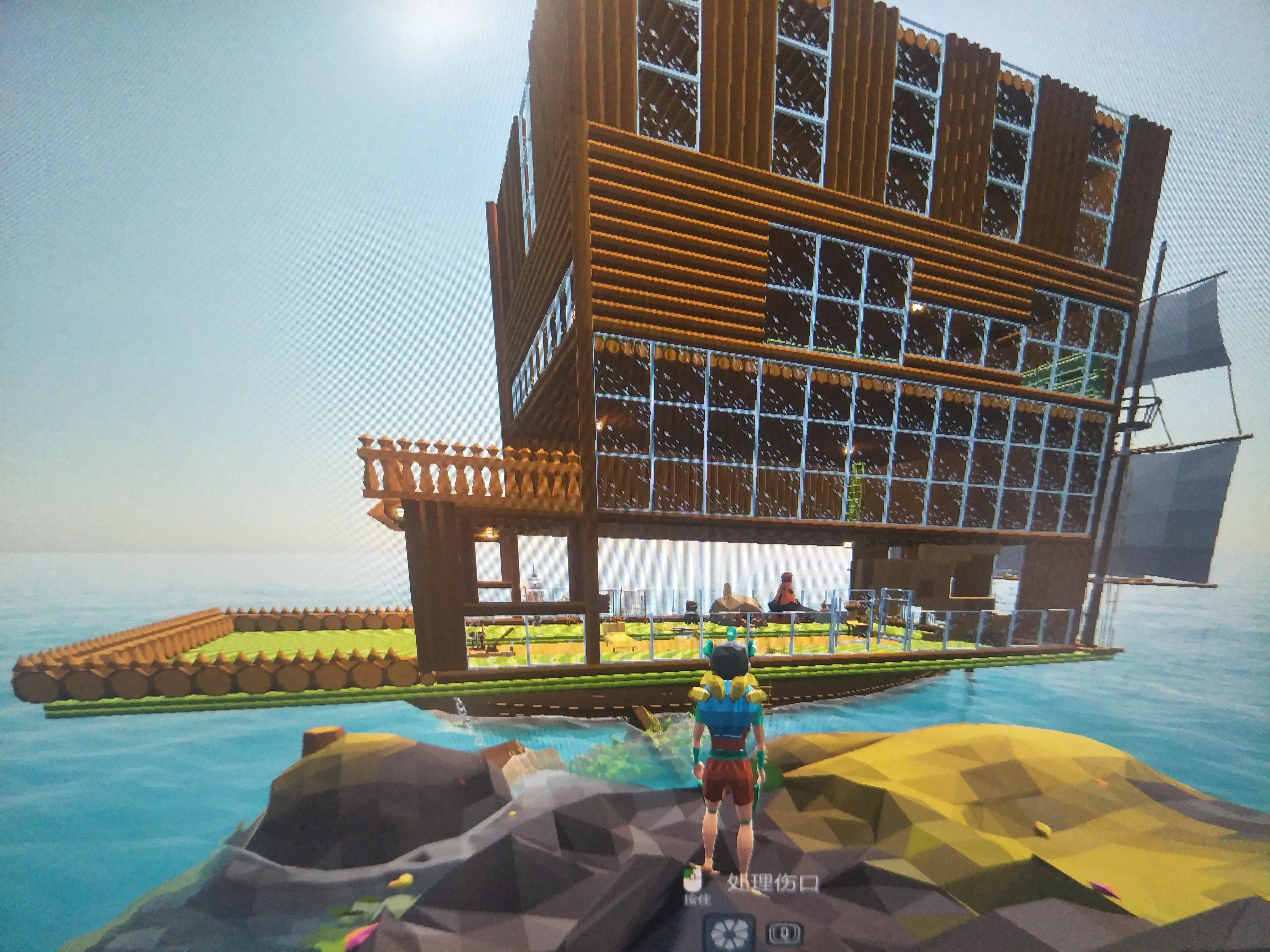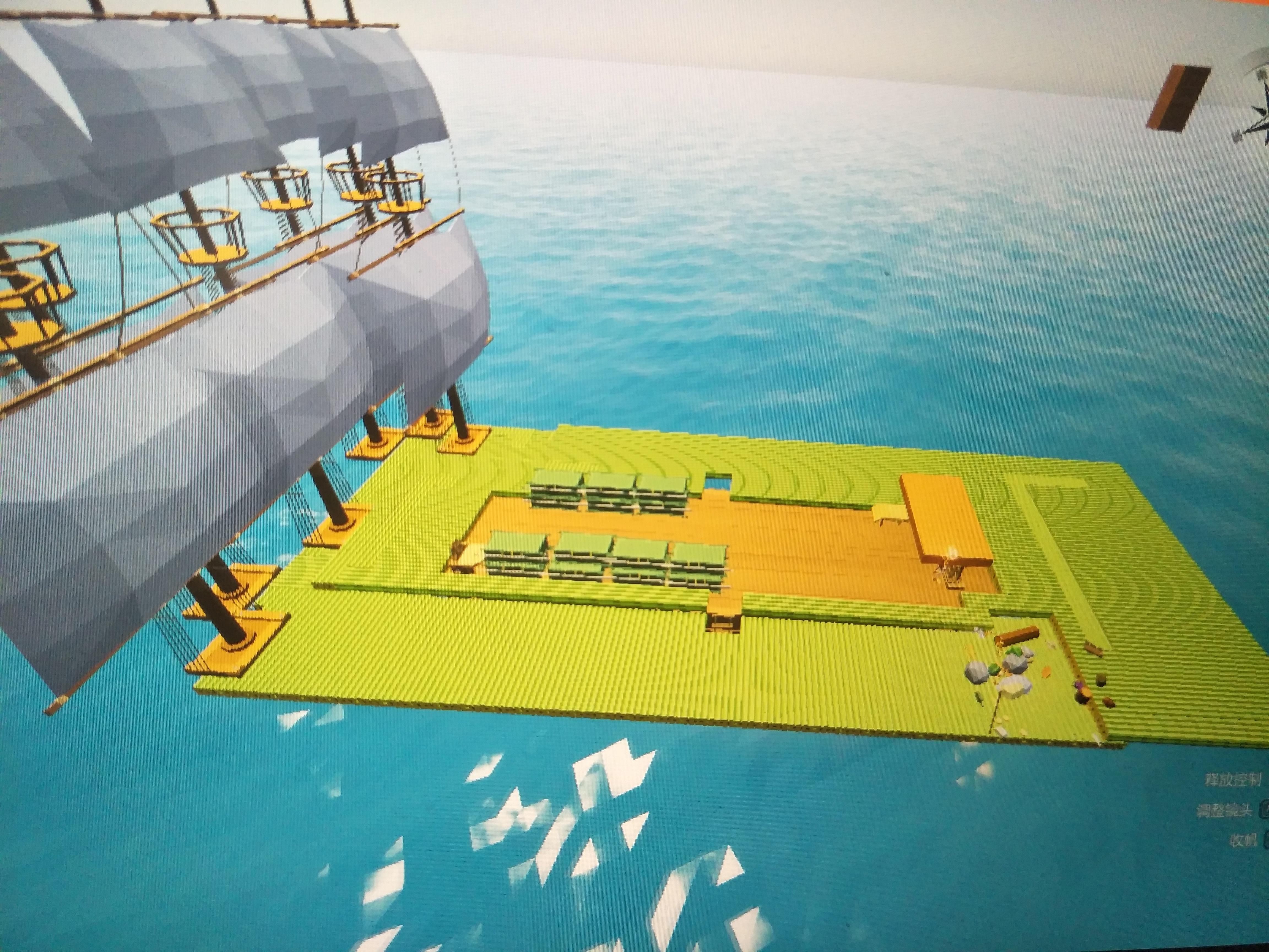 甲板铺好了,但是造房子太累了,不能像我的世界一样持续往上叠,只能一块一块的堆高,太不方便了😕😕