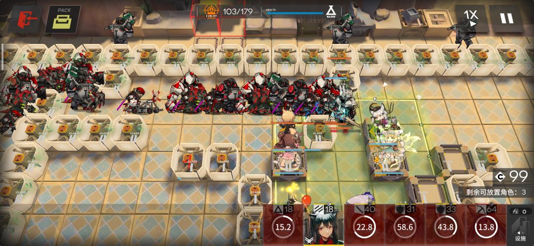 通过反复重开修建一条很长的迷宫,留出足够时间部署干员,然后就是考验干员强度的时候了。需要带迷彩的二级塔楼建筑,否则会被远程敌人击毁。