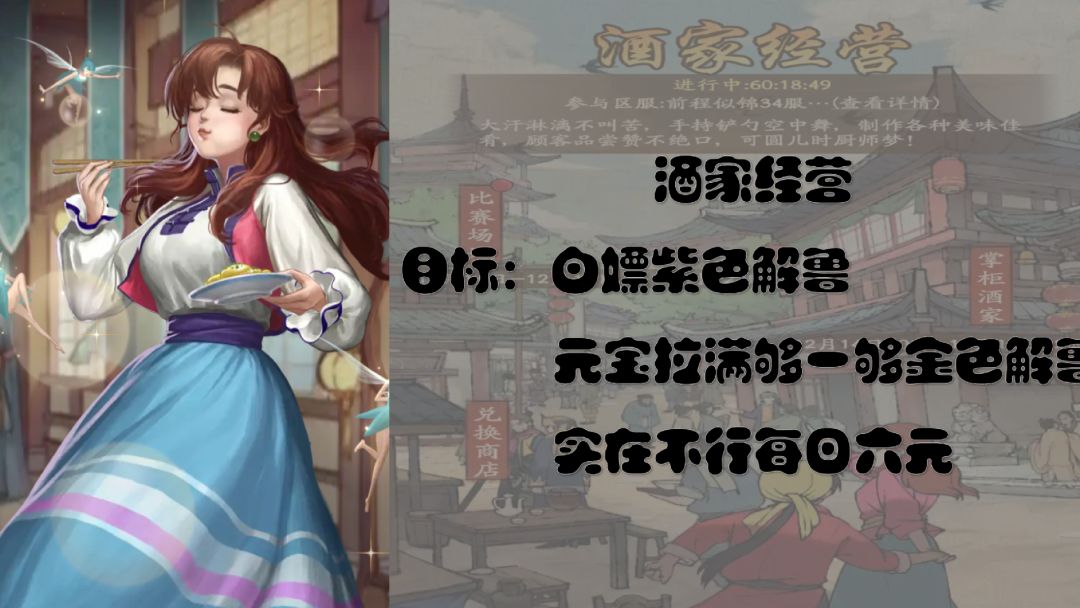 金色解鲁(39道菜的皮肤):欧洲人元宝拉满+6元/稍微欧一点儿的每日6元基本就够了/40体+的非洲人放弃吧