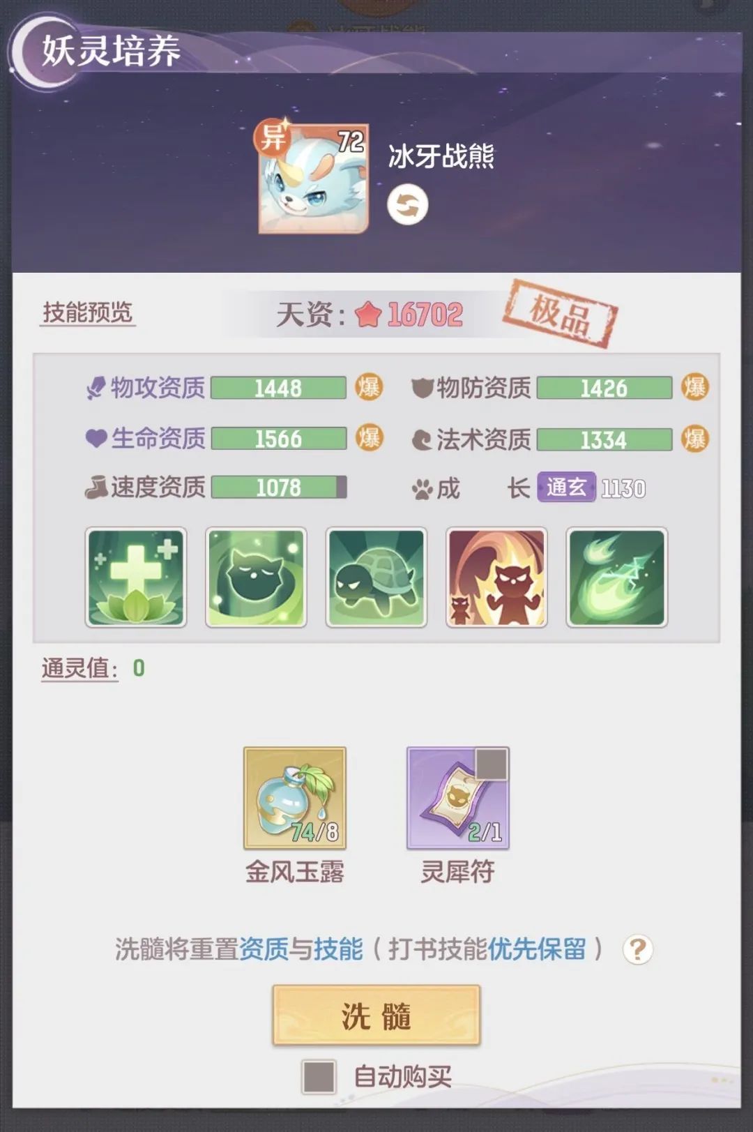 五次出的五暴满技能罗刹,五次就洗出五爆满技能极品妖灵,是谁羡慕到流泪我不说/(ㄒoㄒ)/ 你们是不是有什么洗宠技巧,我是猪师兄,建议分享给我