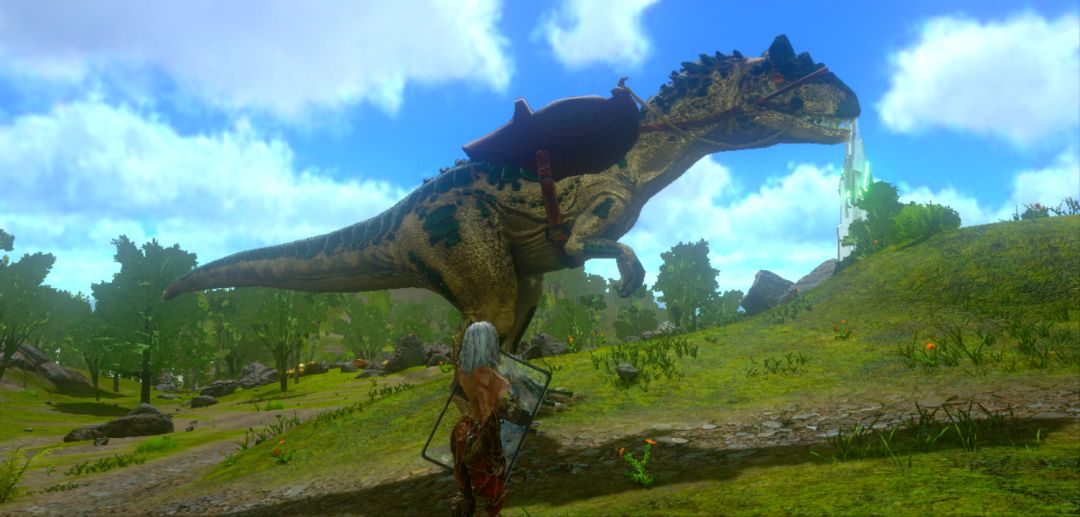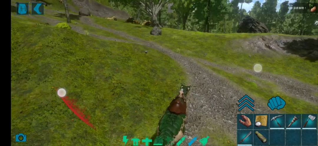 这是我在红树林的两张截图,一开始我在红树林的西北角发现了骇鸟群,牛龙和一群厚鼻龙,准备用它们进行一个简单的实验。一开始我用异特龙引起了厚鼻龙群的仇恨,然后拉扯到牛龙和骇鸟群的身上,当时我的身旁有一只骇鸟和厚鼻龙,我帮助骇鸟咬死厚鼻龙(没有咬到骇鸟)后这个愣头青居然无视厚鼻龙的尸体转而攻击起我身下的异特龙。