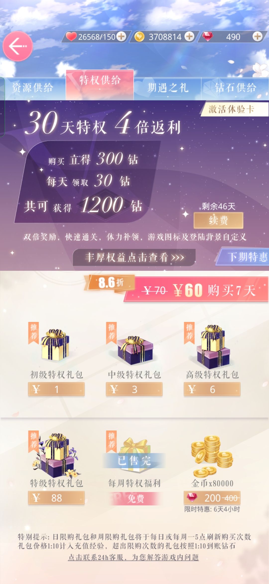 月卡还有46天
