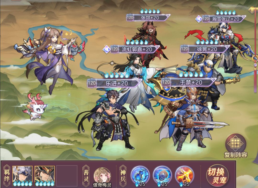 武将:瀚雪张辽-吕布护法、徐晃、于禁、张郃、流虹郭嘉-张辽护法、乐进