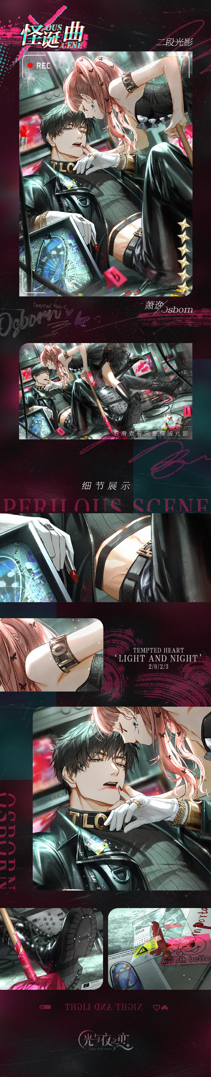 [6星]灵犀 萧逸・怪诞曲 附带灵犀剧情为全新玩法语音约会【倒带】,记录与心爱之人亲密偎依的私密纪事,在心脏的鼓动之间,诉说对你的爱。详情请关注后续资讯。
