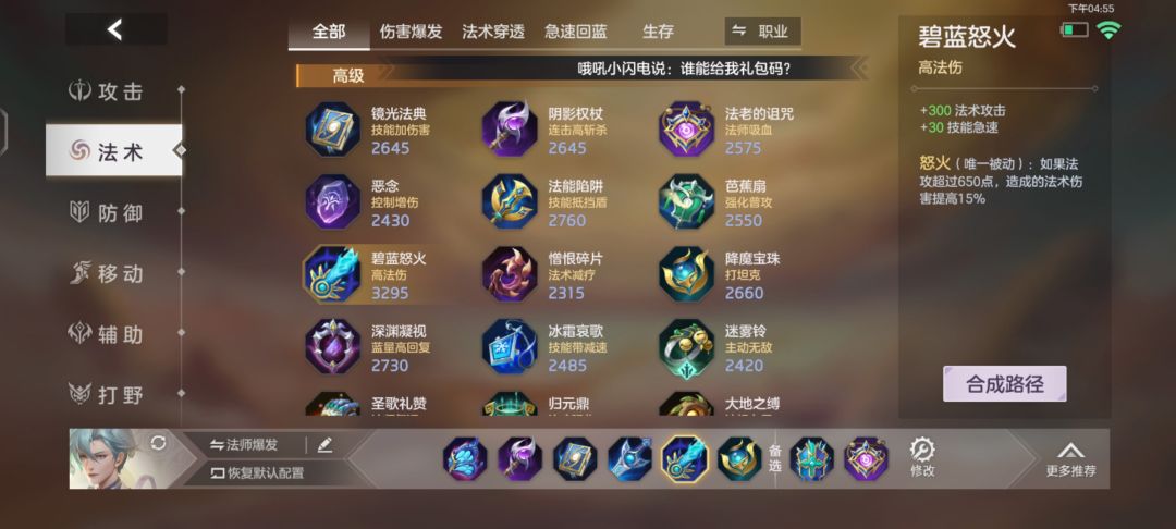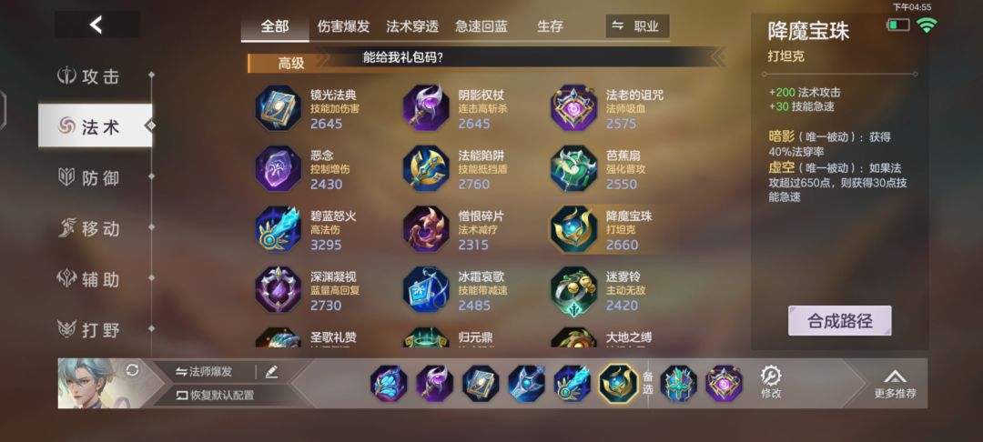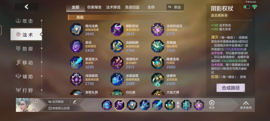 大部分法师英雄必备装备,技能命中有着移速加成,让白泽更好的拉扯敌人