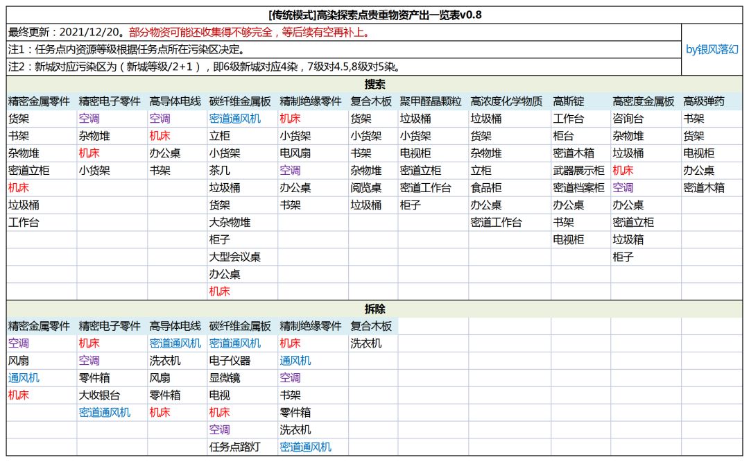 [传统模式]高染探索点贵重物资产出一览表v0.8