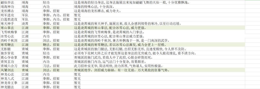 只存在于系数表中的江湖武学