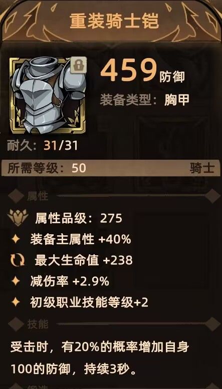 胸甲:重装骑士铠 提升坦度