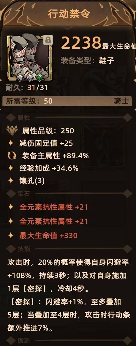 鞋子:行动禁令 别名 赌狗鞋,20%几率3秒内百分百闪避