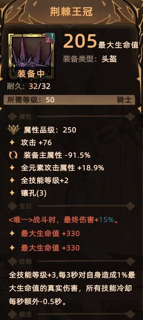 为什么说荆棘王冠是神?全技能等级+5(貌似存在bug),每秒额外减CD,适当自虐,多孔。
