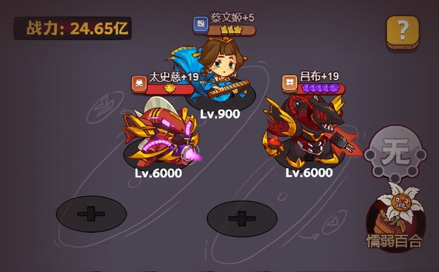 5100关之后小怪的属性提升,我们还是需要上五位武将尊重一下的,其中魏延一定要是速度最低稳定控怒,除了一些特定的BOSS需要调整阵容,这套阵容基本上可以一直用,玩具就用“懦弱百合”。