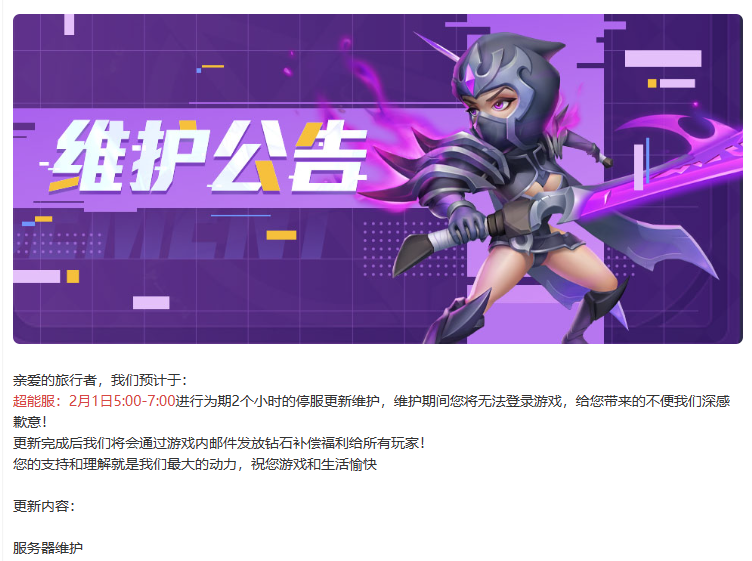 维护公告 | 2023年2月1日维护更新公告