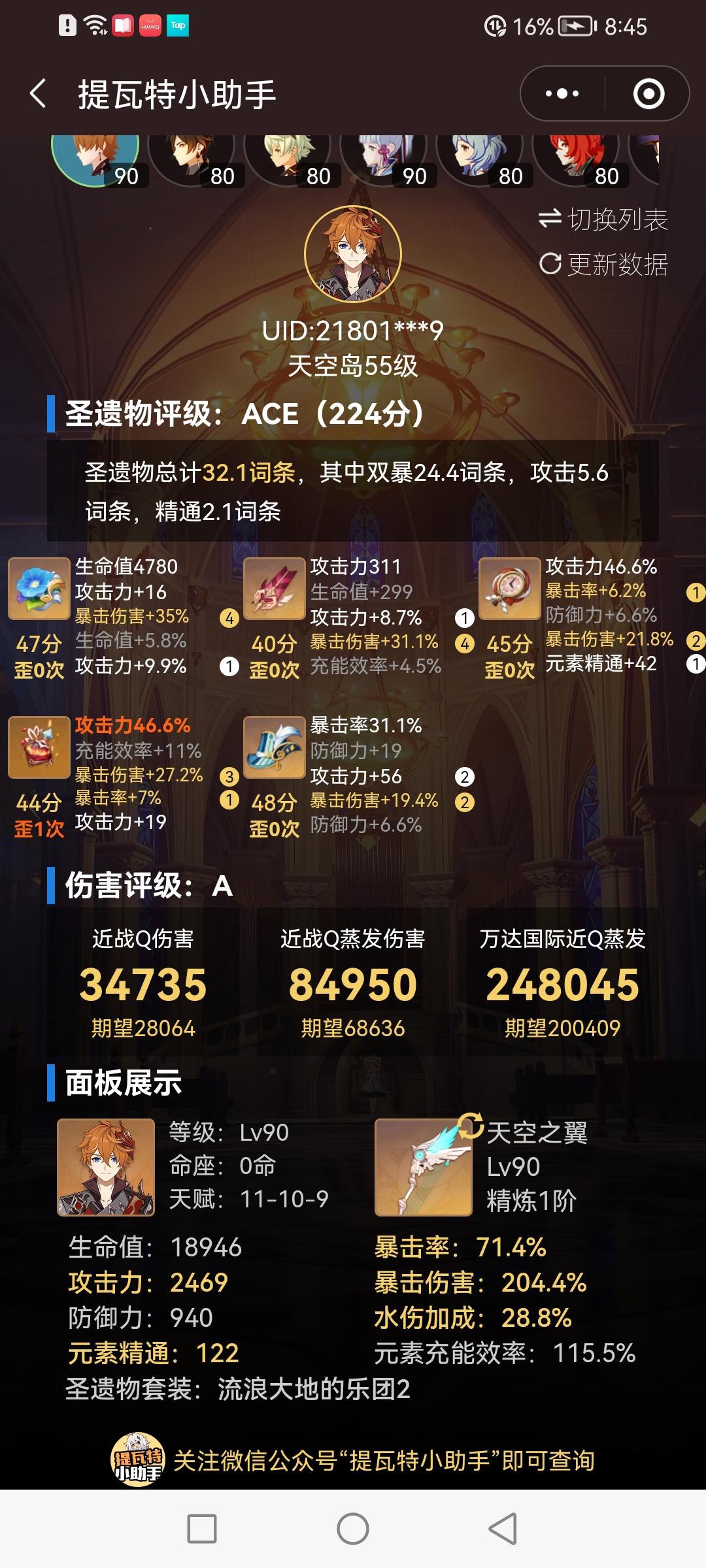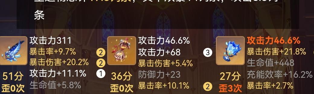 今天看别人都在用提瓦特小助手,我也去看了一眼没想到竟然有个51评分的圣遗物