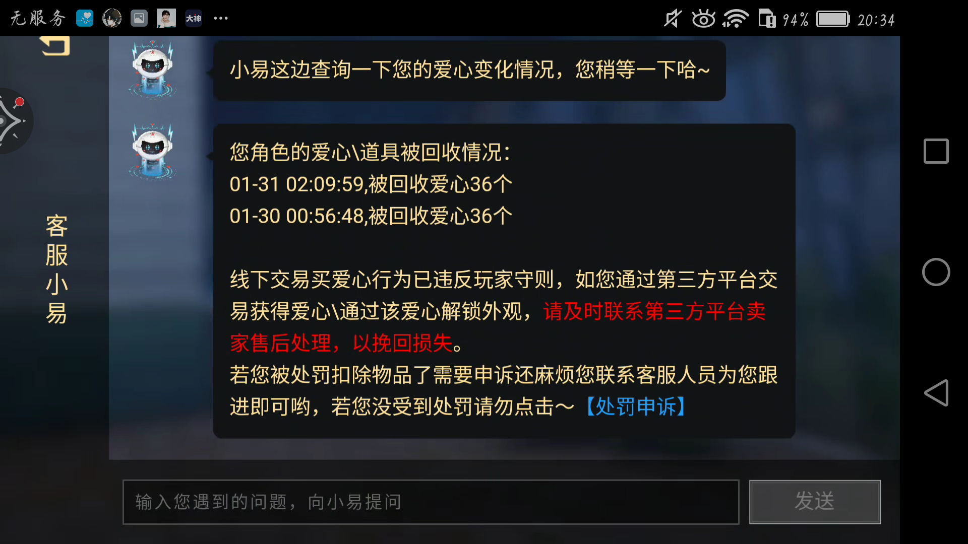今天上线发现我爱心少了好多,昨天还有三百多的,今天就剩两百多了,我去精灵查了一下,发现他直接扣了我36颗心