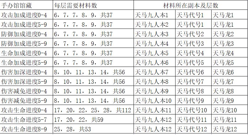 我收集统计整理了目前手办馆馆藏升级所需的材料,方便老玩家们提前刷即将出的新卡馆藏