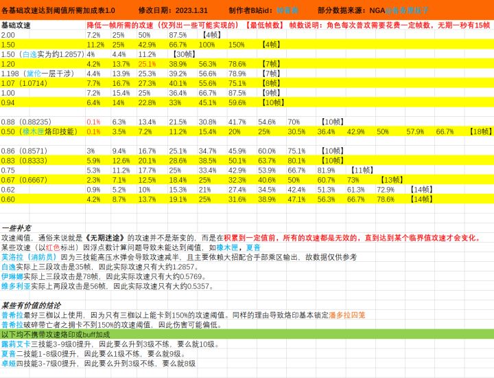 各位局长新年好,兄弟我弄了个攻速加成的表,分享给大家用。