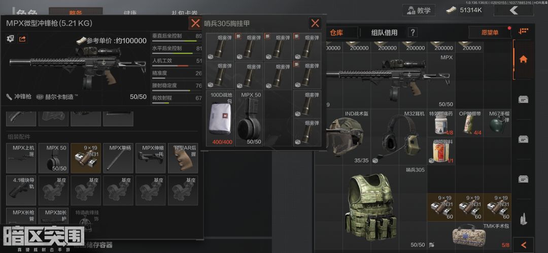 十个烟雾弹能够提升烟雾作战的频率,TMK野战包可以应对更加激烈的战斗,止疼药和绷带必不可少,饮料用于长时间作战后补充水分和饱食