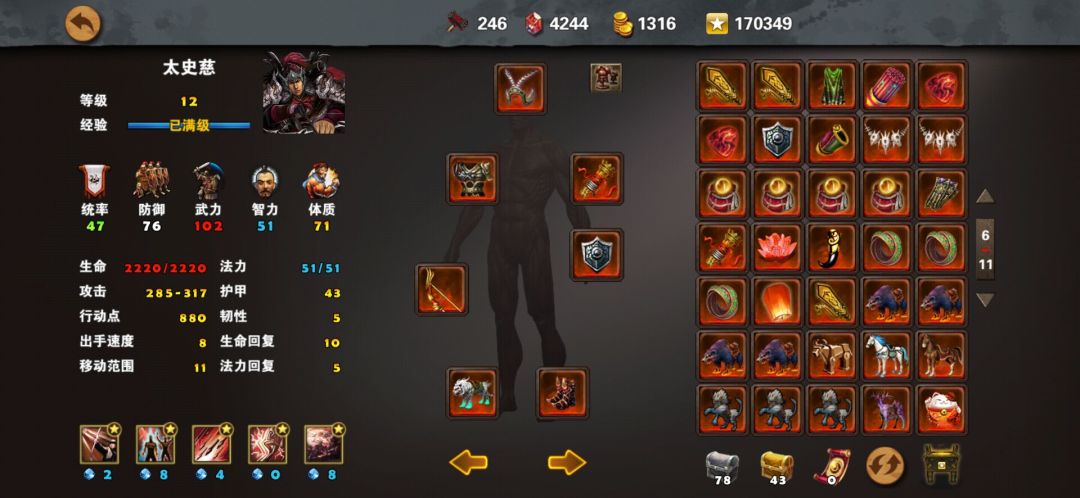 太史慈:后羿弓、擎天甲(勇士甲)、白翎冠、夕兽护腕、龟盾、白虎(赤兔)、戏法鞋(虎鞋)