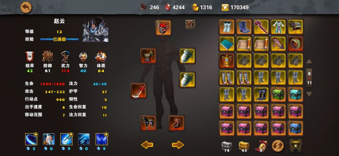赵云:血煞、勇士甲、疯魔头、铁骑令(六韬)、绝影、虎鞋
