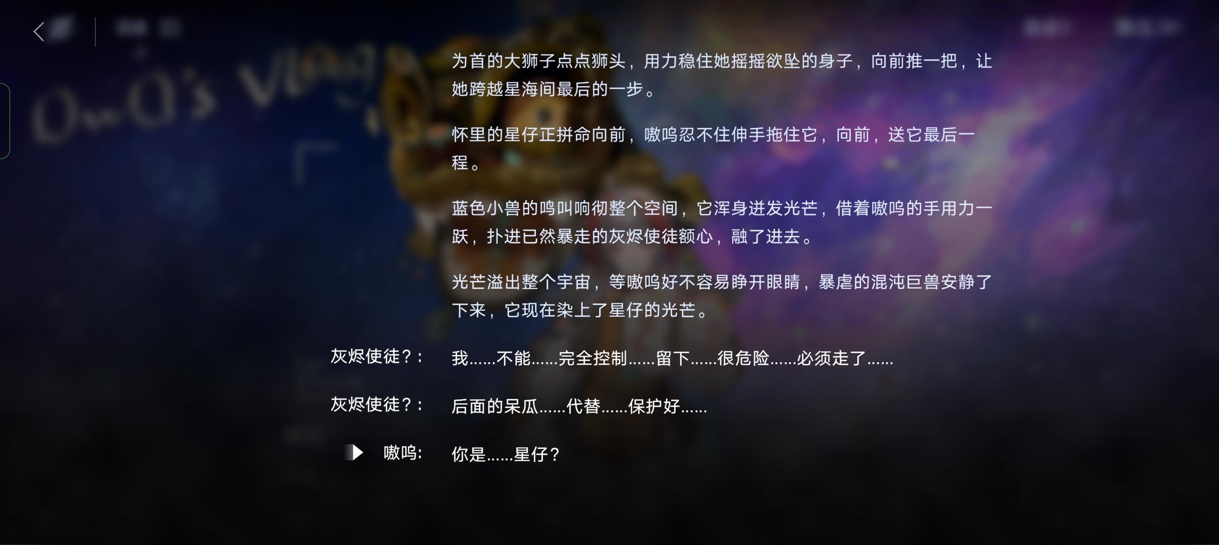 嗷呜的相关设定和星仔的剧情设定有矛盾,希望项目组可以检查一下给个解释说法,这种矛盾真的很影响剧情的体验