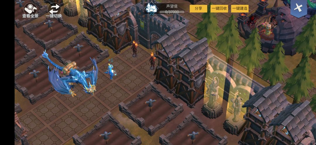 漂亮的家园,冰龙吃饭回家了,骑上冰龙。遥望荒芜的田地,和没有屋顶的家,储物柜展示,制造建筑展示,王座和大雕像,唯一俩个石雕龙,装备架4大龙装样本展示,佣兵9宫格房间宿舍5个床,40个床一半的佣兵,配上火把照亮。领主卧室床铺和餐桌展示,博学者会坐在那个桌子上,城门黑龙士兵,农田里偶尔会有采集蹲在那刨地。😂😅