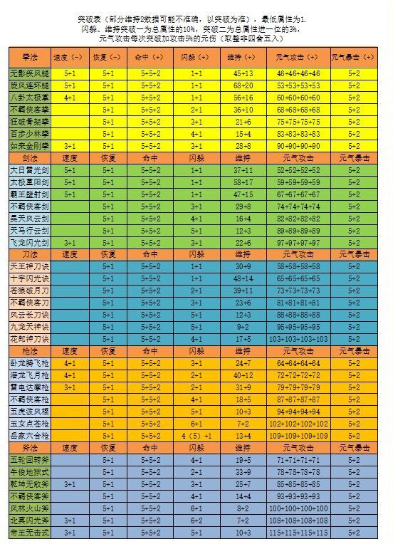 量大于维持数值就会进入恢复状态,不同武功的维持