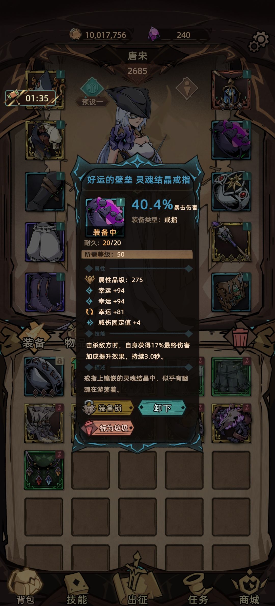 至于副手弄了个双幸运就满了。