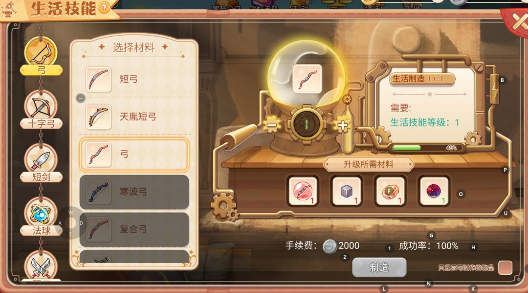 生活制造的升级则需要使用通过打怪掉落的材料或者使用采集、挖矿、钓鱼产出的材料来制造做装备的基础材料升级,制造武器装备、拼图、药水也可以升级。